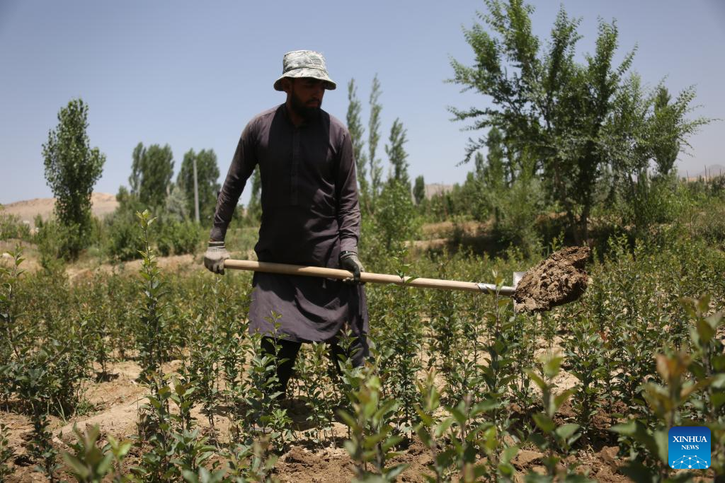 KABUL, June 25 (Xinhua) -- Noor Agha, a local farmer who has been farming for over a decade across eastern and southern Afghanistan, now works among apple and cherry trees with a shovel in hand and a smile on his face.