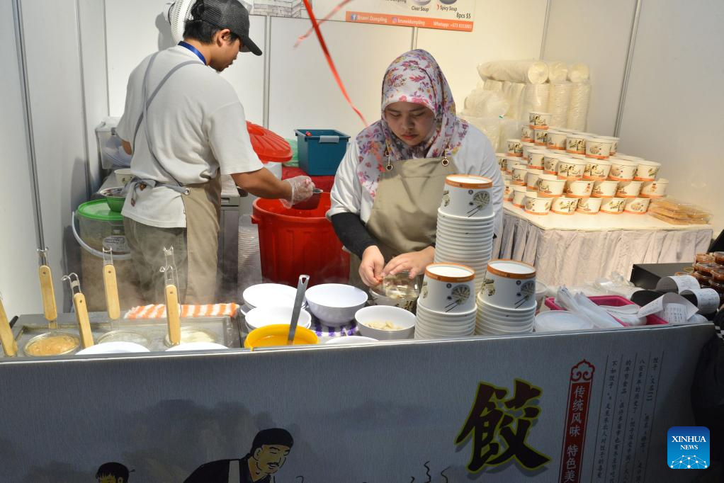 A booth selling Chinese dumplings is pictured in Bandar Seri Begawan, Brunei, June 25, 2025. The 31st CFTE of Brunei opened at the International Convention Center here on Wednesday, attracting over 350 exhibitors and more than 600 booths.