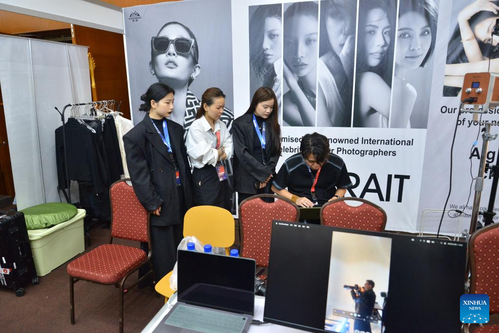 Staff members of a Chinese photograph company are pictured at the 31st Consumer Fair & Trade Expo (CFTE) of Brunei in Bandar Seri Begawan, Brunei, June 25, 2025. The 31st CFTE of Brunei opened at the International Convention Center here on Wednesday, attracting over 350 exhibitors and more than 600 booths. Brunei's biggest consumer fair, CFTE is being held from June 25 to June 29, alongside the 2nd Consumer Fair Conference (CONFAC). (Xinhua/Li Meng)