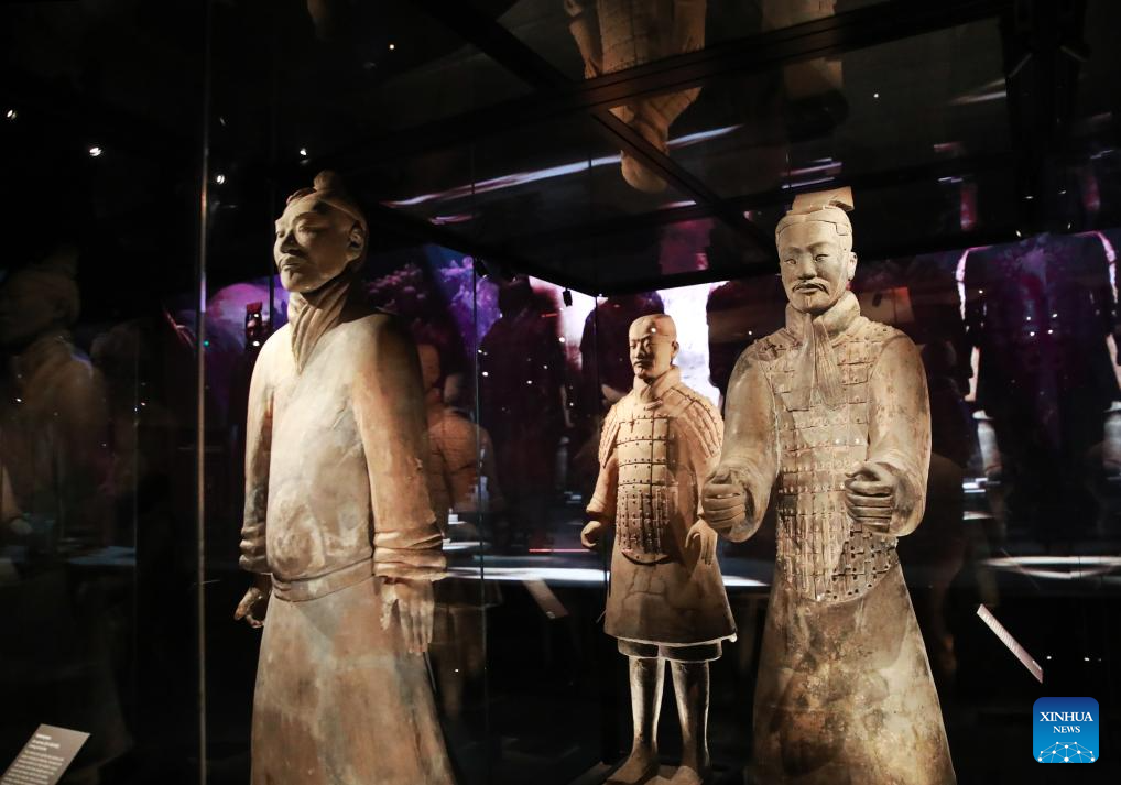 Exhibits are pictured during the media preview of the "Terracotta Warriors: Legacy of the First Emperor" exhibition at the Western Australian Museum Boola Bardip in Perth, Australia, June 25, 2025. The museum will host more than 225 artefacts from the dynasties of Qin (221-207 BC) and Han (202 BC-AD 220), including 10 Terracotta Warriors, for eight months starting from June 28.