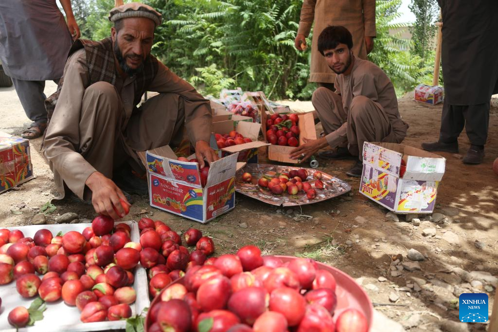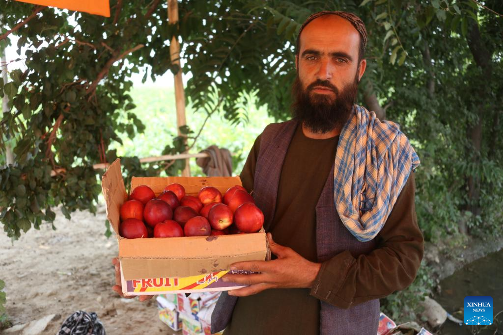 A local farmer shows newly-harvested peaches at an orchard in Parwan province, eastern Afghanistan, June 26, 2025. (Photo by Saifurahman Safi/Xinhua)