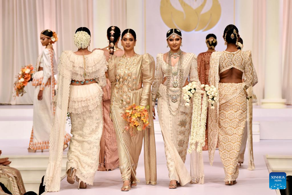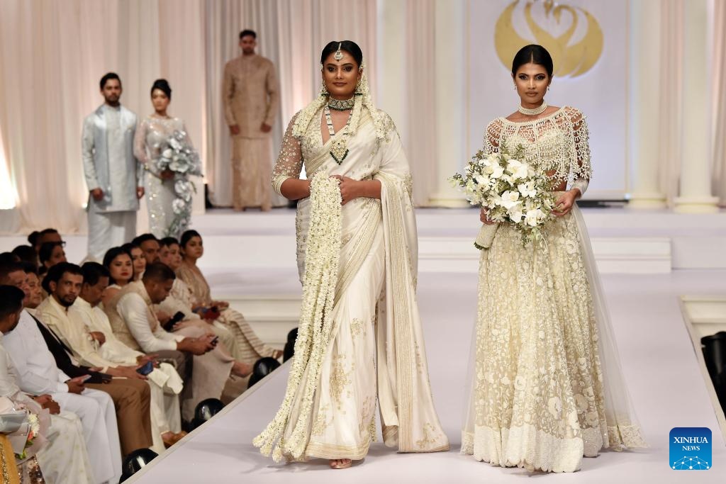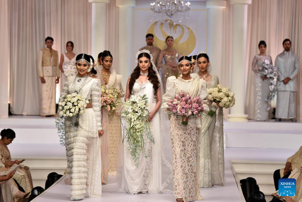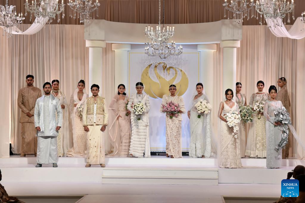 Models present creations during an exclusive bridal and fashion show in Colombo, Sri Lanka, on June 24, 2025. (Photo by Gayan Sameera/Xinhua)