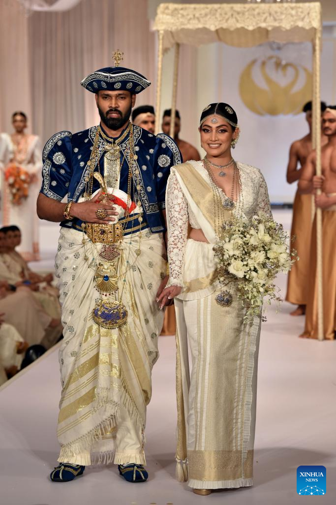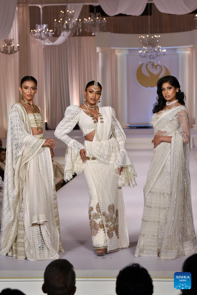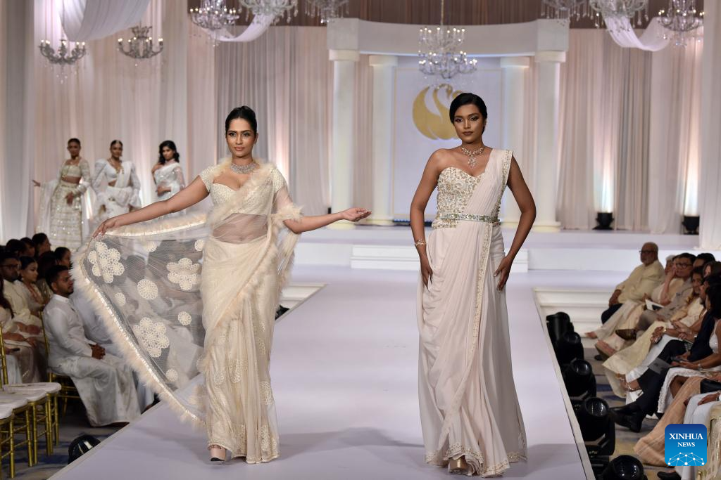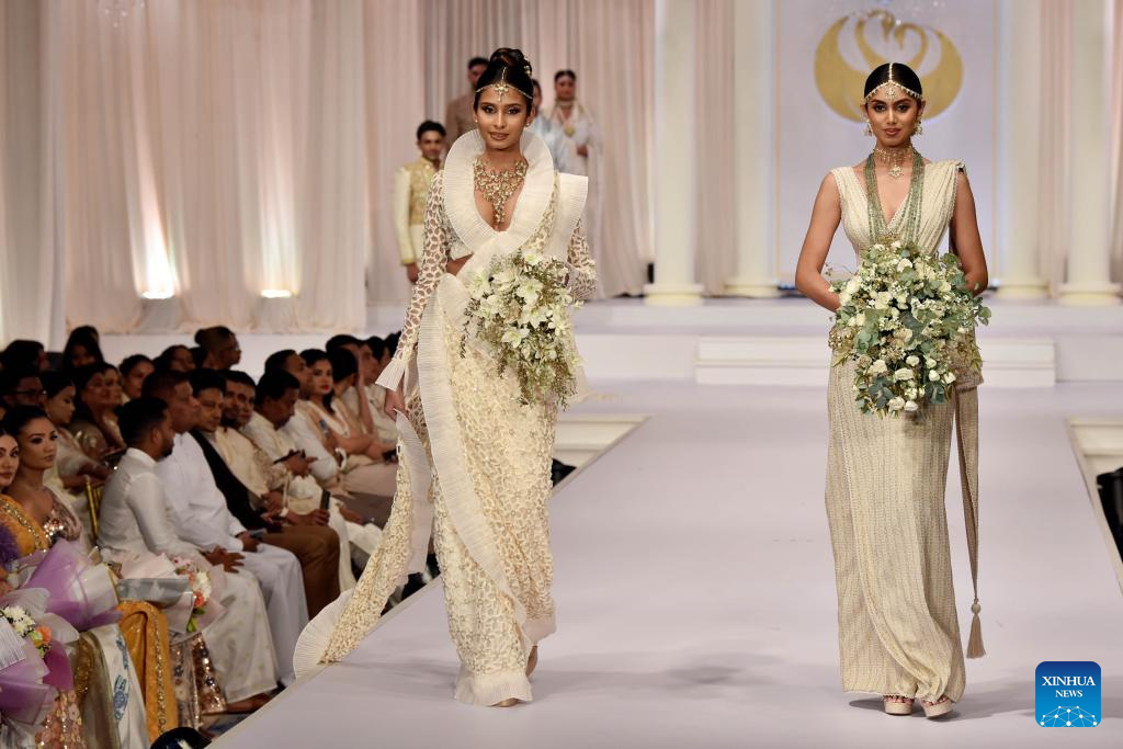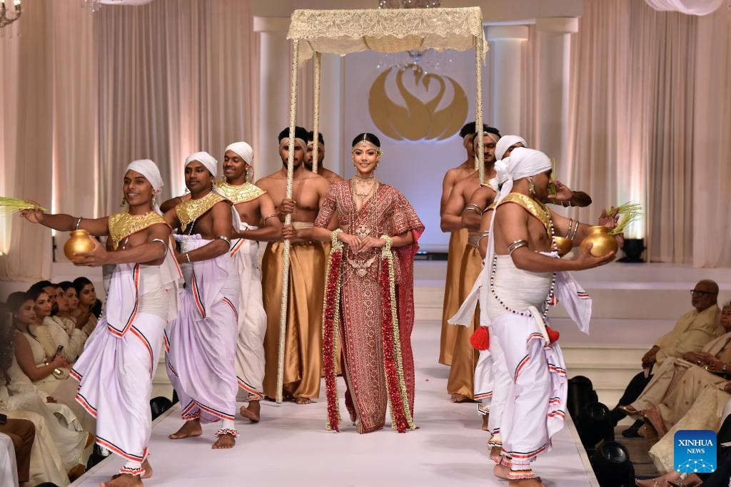 Models present creations during an exclusive bridal and fashion show in Colombo, Sri Lanka, on June 24, 2025. (Photo by Gayan Sameera/Xinhua)