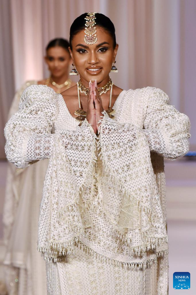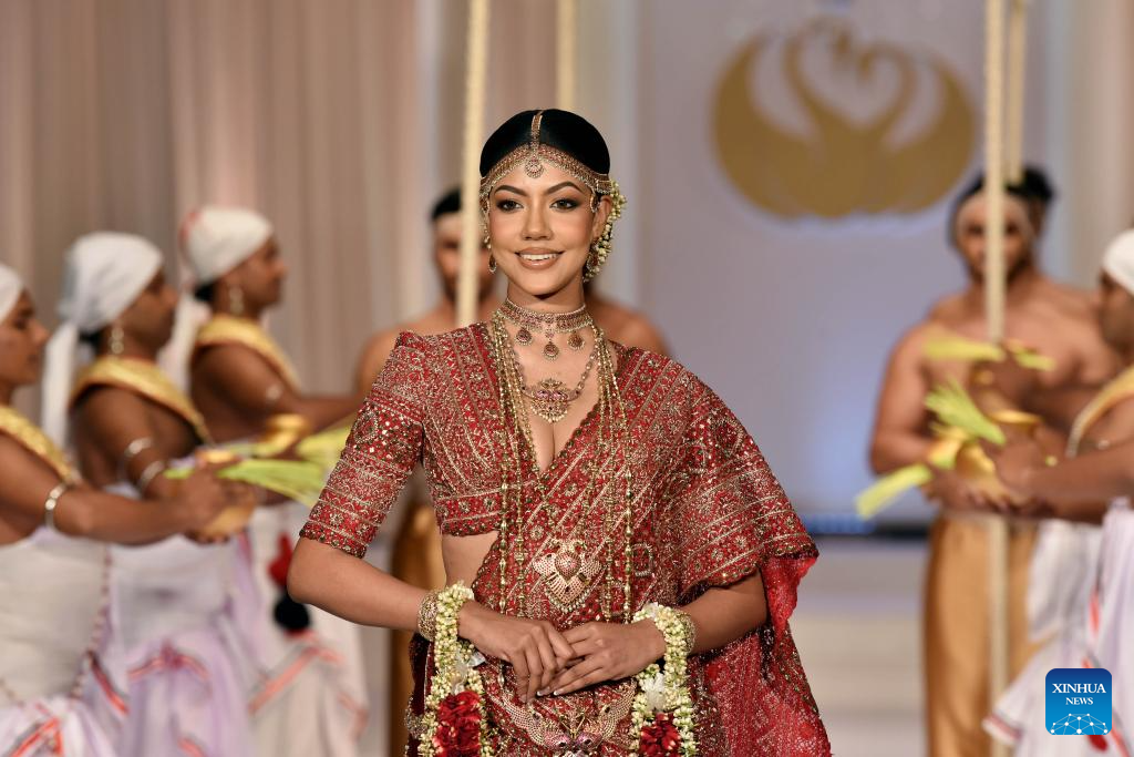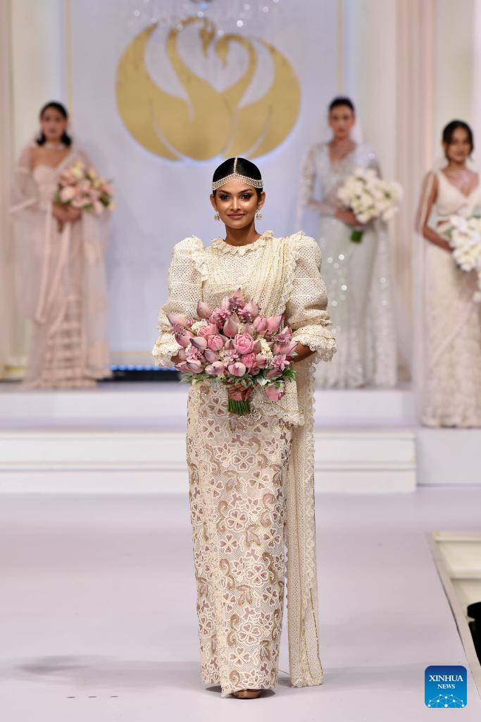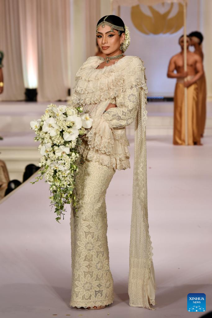 A model presents a creation during an exclusive bridal and fashion show in Colombo, Sri Lanka, on June 24, 2025. (Photo by Gayan Sameera/Xinhua)