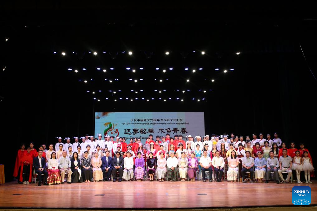 Youth cultural performances by students from Chinese schools in Myanmar and the State High School of Arts in Yangon were staged here on Sunday to celebrate the 75th anniversary of China-Myanmar diplomatic relations.