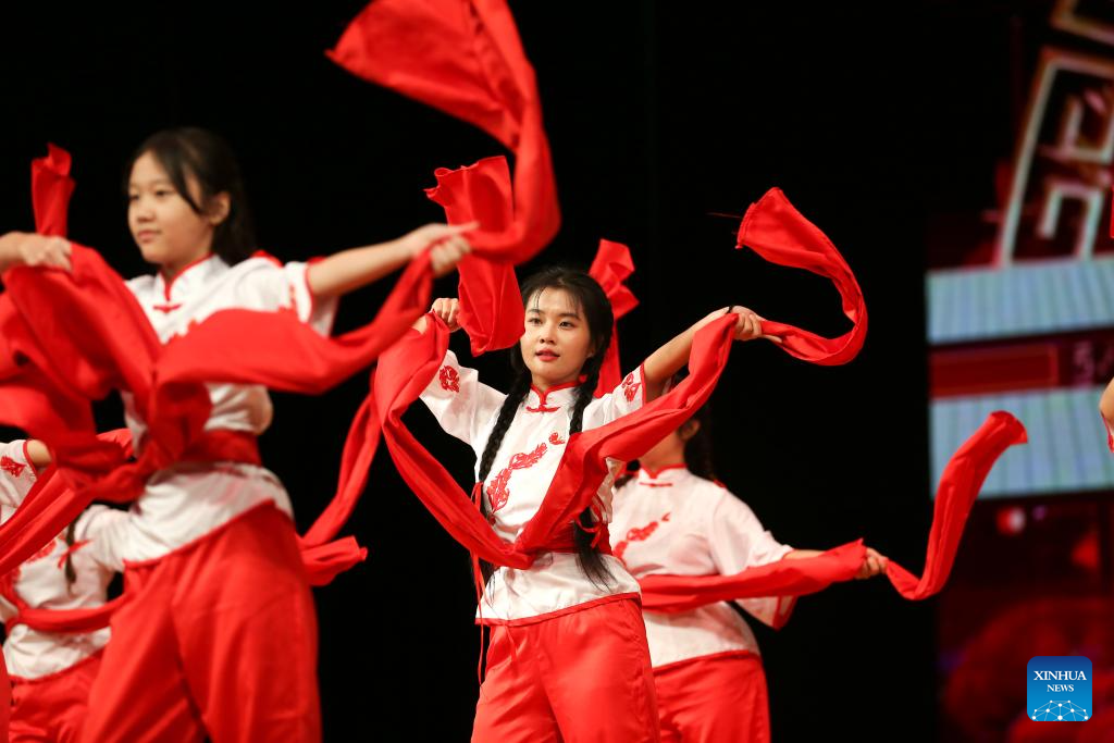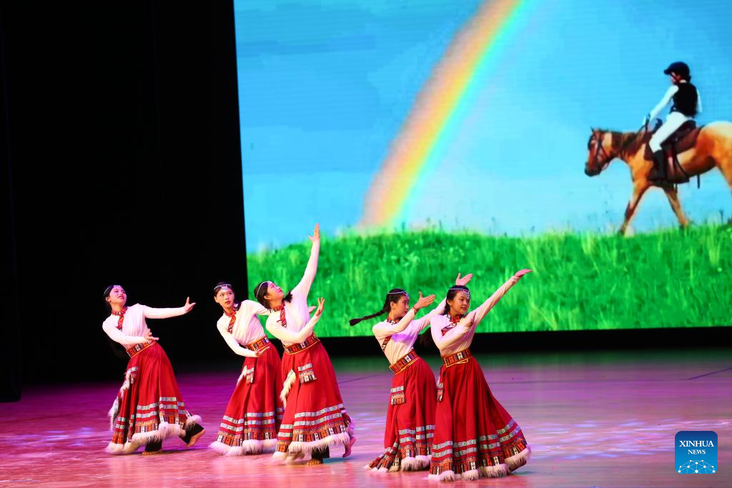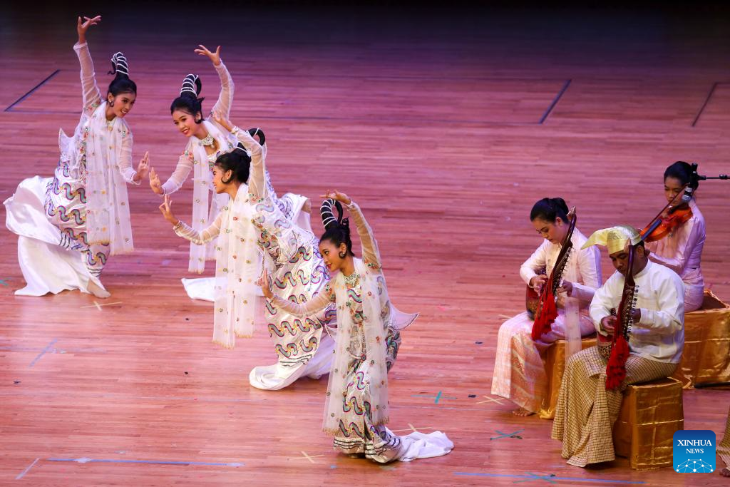 Students perform during a celebration marking the 75th anniversary of China-Myanmar diplomatic relations in Yangon, Myanmar, June 29, 2025. Youth cultural performances by students from Chinese schools in Myanmar and the State High School of Arts in Yangon were staged here on Sunday to celebrate the 75th anniversary of China-Myanmar diplomatic relations. The event was jointly organized by the Chinese Embassy in Myanmar, Myanmar's Ministry of Religious Affairs and Culture, Golden Education Sharing Center (GESC) Chinese Language Center, the China Cultural Center in Yangon, and other Chinese organizations. (Xinhua/Myo Kyaw Soe)