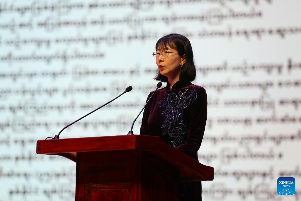 The event was jointly organized by the Chinese Embassy in Myanmar, Myanmar's Ministry of Religious Affairs and Culture, Golden Education Sharing Center (GESC) Chinese Language Center, the China Cultural Center in Yangon, and other Chinese organizations. (Xinhua/Myo Kyaw Soe)