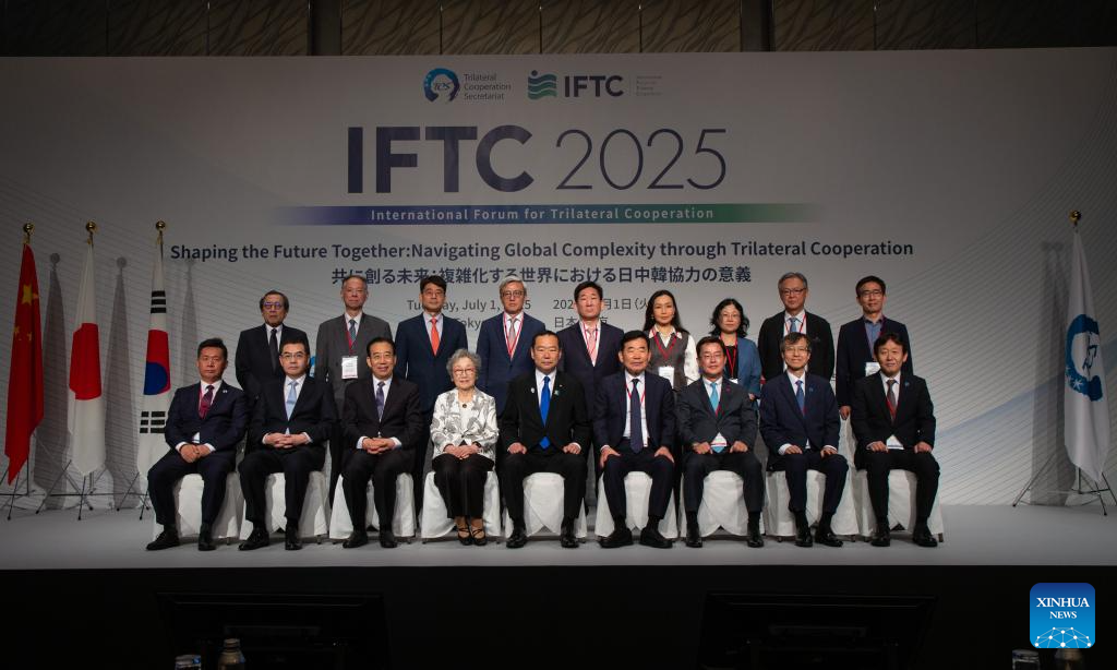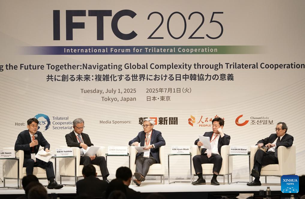 TOKYO, July 1 (Xinhua) -- The 2025 Trilateral Cooperation Forum was held here on Tuesday, bringing together over 200 in-person participants and hundreds of online attendees to discuss ways to strengthen cooperation among China, Japan and the Republic of Korea (ROK).