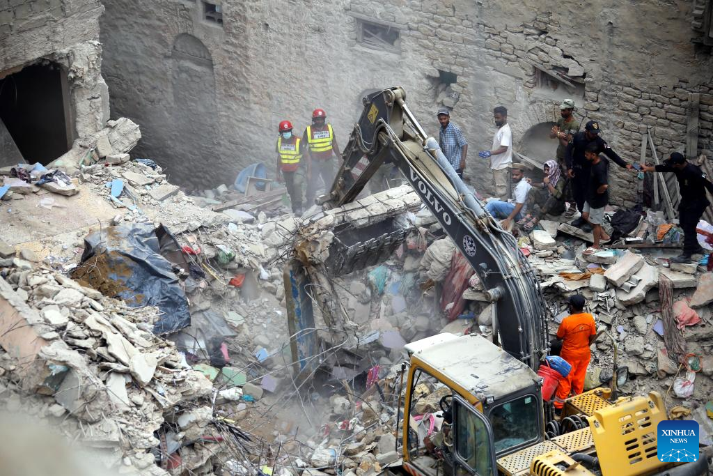 ISLAMABAD, July 6 (Xinhua) -- The death toll in the building collapse in Pakistan's southern port city of Karachi has jumped to 27 as rescuers retrieved more bodies, a spokesperson of the state-owned rescue organization Rescue 1122 said on Sunday.