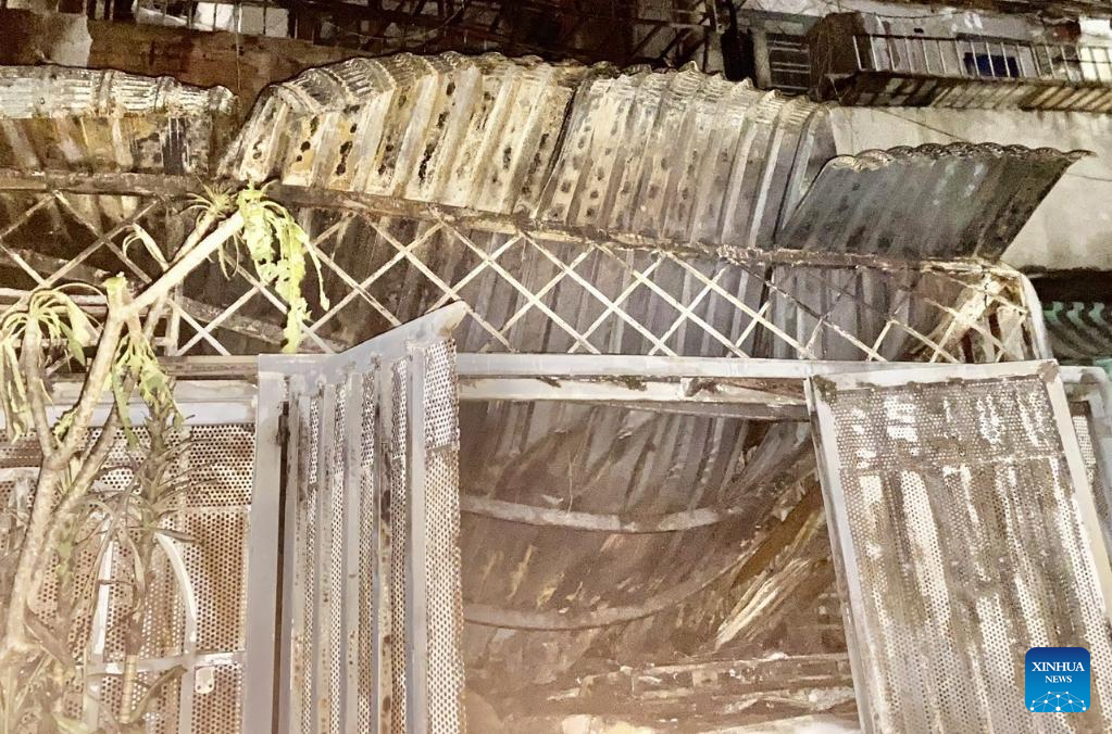 The roof of a residential complex collapses after a fire in Vietnam's southern Ho Chi Minh City, July 6, 2025. (VNA via Xinhua)