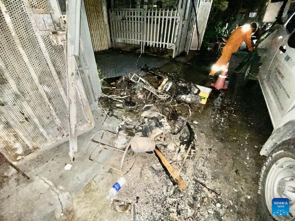 A vehicle is destroyed by a fire in a residential complex in Vietnam's southern Ho Chi Minh City, July 6, 2025. (VNA via Xinhua)