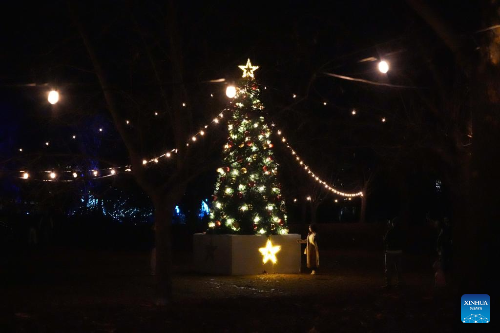 A girl makes a wish beside a Christmas tree during the July Christmas event in Canberra, Australia, on July 6, 2025. In the southern hemisphere, July Christmas shines as a one-of-a-kind celebration born from Australians' yearning for a classic white Christmas. (Photo by Zhang Na/Xinhua)