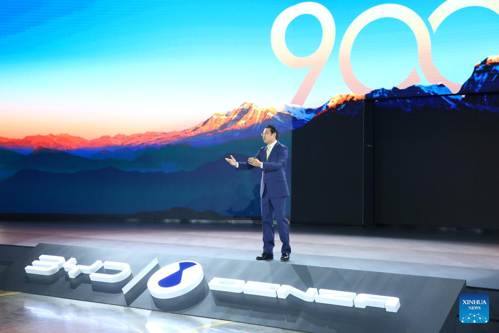 Liu Xueliang, general manager of BYD's Asia-Pacific Auto Sales Division, addresses a ceremony marking the delivery of BYD's 90,000th locally made NEV in Thailand, and the first anniversary of operations of BYD's local production facility, in Rayong province, Thailand, on July 7, 2025. (Xinhua/Sun Weitong)