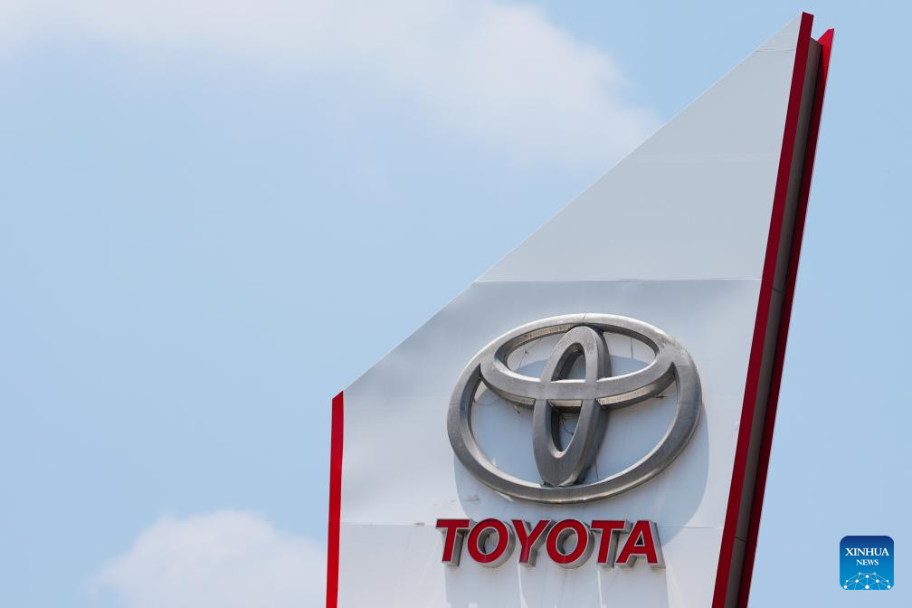 This photo taken on July 8, 2025 shows a logo of Japanese automaker Toyota in Tokyo, Japan. Japanese Prime Minister Shigeru Ishiba said Tuesday that U.S. President Donald Trump's decision to impose a 25 percent tariff on Japan is "truly regrettable," noting bilateral negotiations will continue toward a mutually beneficial deal. (Xinhua/Jia Haocheng)