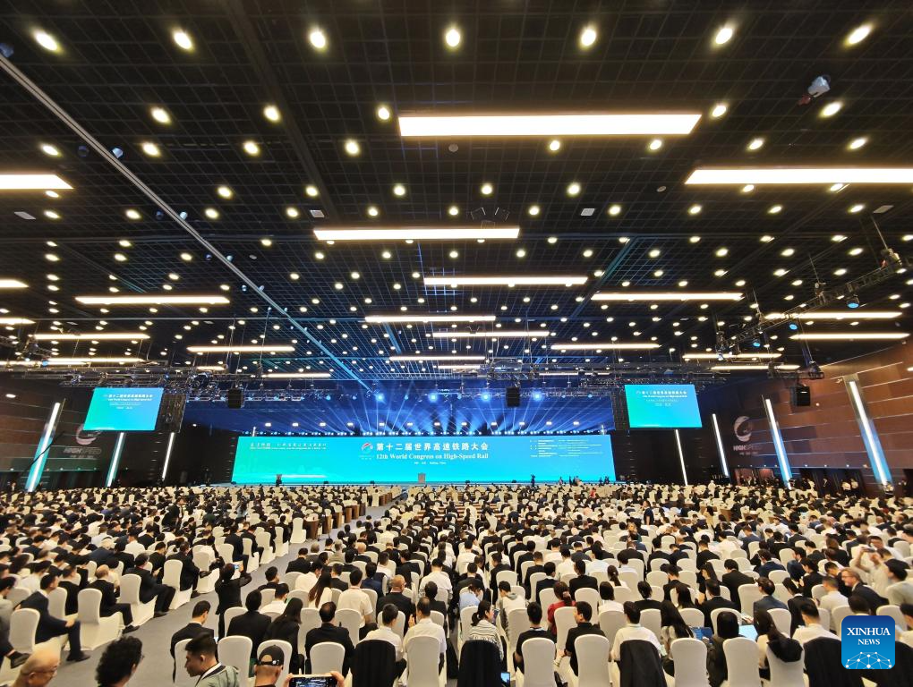 Guests attend the 12th World Congress on High-Speed Rail in Beijing, capital of China, July 8, 2025. Themed "High-Speed Rail: Innovation and Development for a Better Life", the congress opened here on July 8. More than 2,000 participants, including railway technical personnel, enterprise leaders, government officials, and representatives from international organizations, attended the opening ceremony. (Xinhua/Xing Guangli)