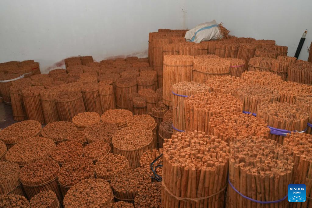 This photo taken on July 9, 2025 shows processed cinnamon in Galle, Sri Lanka. Sri Lanka aims to make cinnamon the country's foremost export-oriented plantation crop. (Photo by Thilina Kaluthotage/Xinhua)