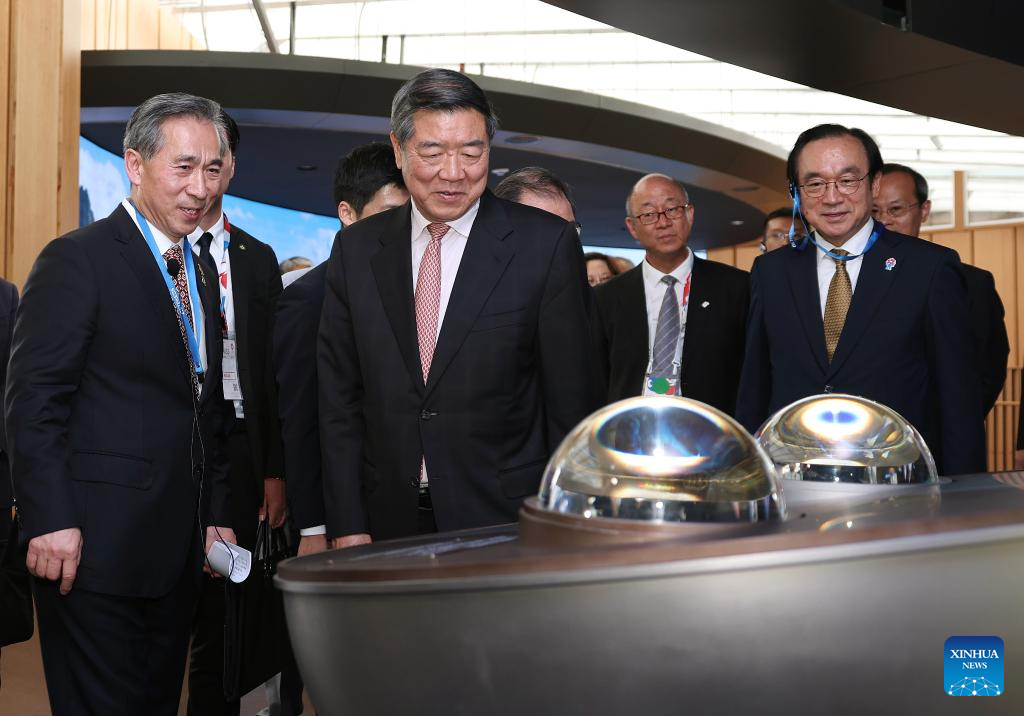 Chinese Vice Premier He Lifeng, also a member of the Political Bureau of the Communist Party of China Central Committee, visits the China Pavilion at Expo 2025 Osaka in Osaka, Japan, July 11, 2025. He on Friday attended China's National Pavilion Day at Expo 2025 Osaka and delivered a speech. (Xinhua/Jia Haocheng)
