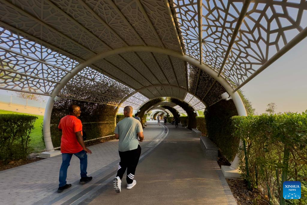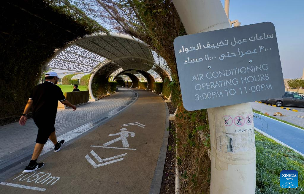 One prominent example is Umm Al Seneem Park, home to one of the world's longest outdoor air-conditioned walking and jogging tracks. The 1.143-km loop is cooled by a sophisticated cooling system. When Xinhua visited the park, residents strolled along the shaded paths, enjoying what one described as "true outdoor freedom in the summer."