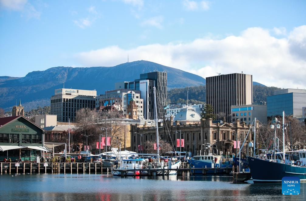 This photo taken on July 15, 2025 shows a view of the Constitution Dock in Hobart, Australia. Located in Tasmania's southeast on the estuary of the River Derwent, Hobart is Australia's southernmost capital city. It serves as Tasmania's financial and administrative hub, as well as major port and tourist destination. (Xinhua/Ma Ping)