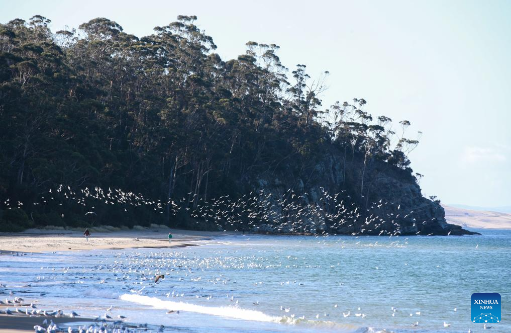 Flocks of seagulls perch on Kingston Beach on the outskirts of Hobart, Australia, on July 16, 2025. Located in Tasmania's southeast on the estuary of the River Derwent, Hobart is Australia's southernmost capital city. It serves as Tasmania's financial and administrative hub, as well as major port and tourist destination. (Xinhua/Ma Ping)