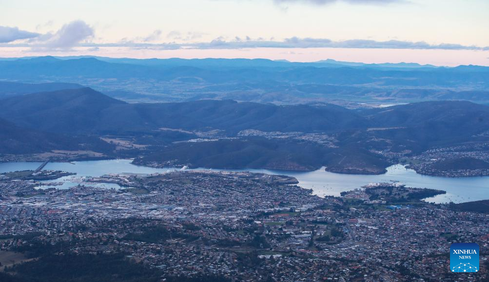 This photo taken from Mount Wellington on July 15, 2025 shows a view of downtown Hobart, Australia. Located in Tasmania's southeast on the estuary of the River Derwent, Hobart is Australia's southernmost capital city. It serves as Tasmania's financial and administrative hub, as well as major port and tourist destination. (Xinhua/Ma Ping)