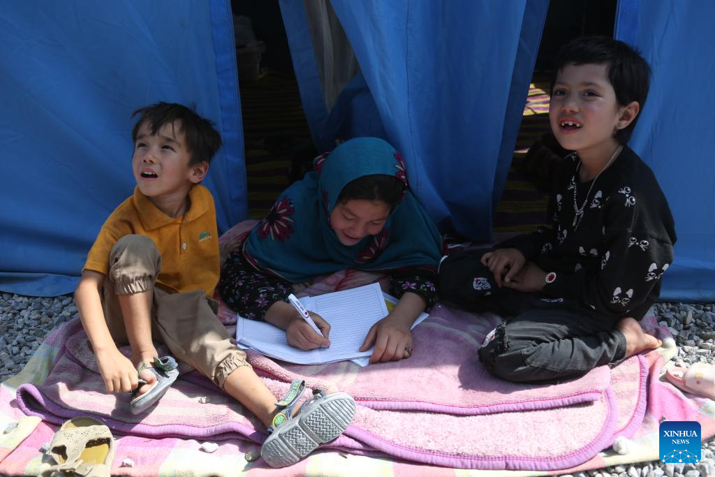 Afghan children are seen at a makeshift camp in Kabul, Afghanistan, July 20, 2025. More than 1,500 Afghan refugee families returned to their homeland, Afghanistan, from the neighboring Iran and Pakistan in a single day on Saturday, reported the state-owned Bakhtar news agency on Sunday. (Photo by Saifurahman Safi/Xinhua)