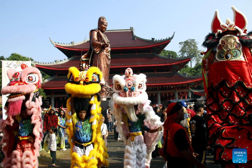 People perform the lion dance during a cultural event to commemorate the 620th anniversary of Chinese admiral Zheng He's first westward journey at the Sam Poo Kong Temple in Semarang, Central Java Province, Indonesia, on July 27, 2025. (Photo by Kalila/Xinhua)