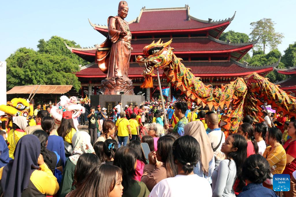 People attend a cultural event to commemorate the 620th anniversary of Chinese admiral Zheng He's first westward journey, at the Sam Poo Kong Temple in Semarang, Central Java Province, Indonesia, on July 27, 2025. (Photo by Kalila/Xinhua)