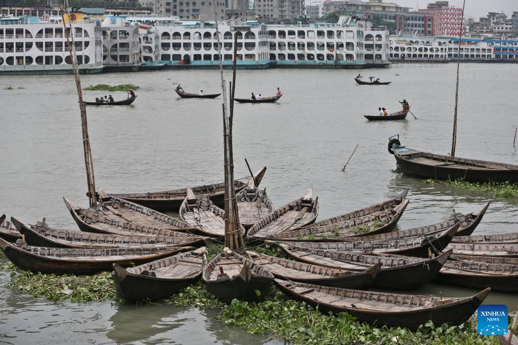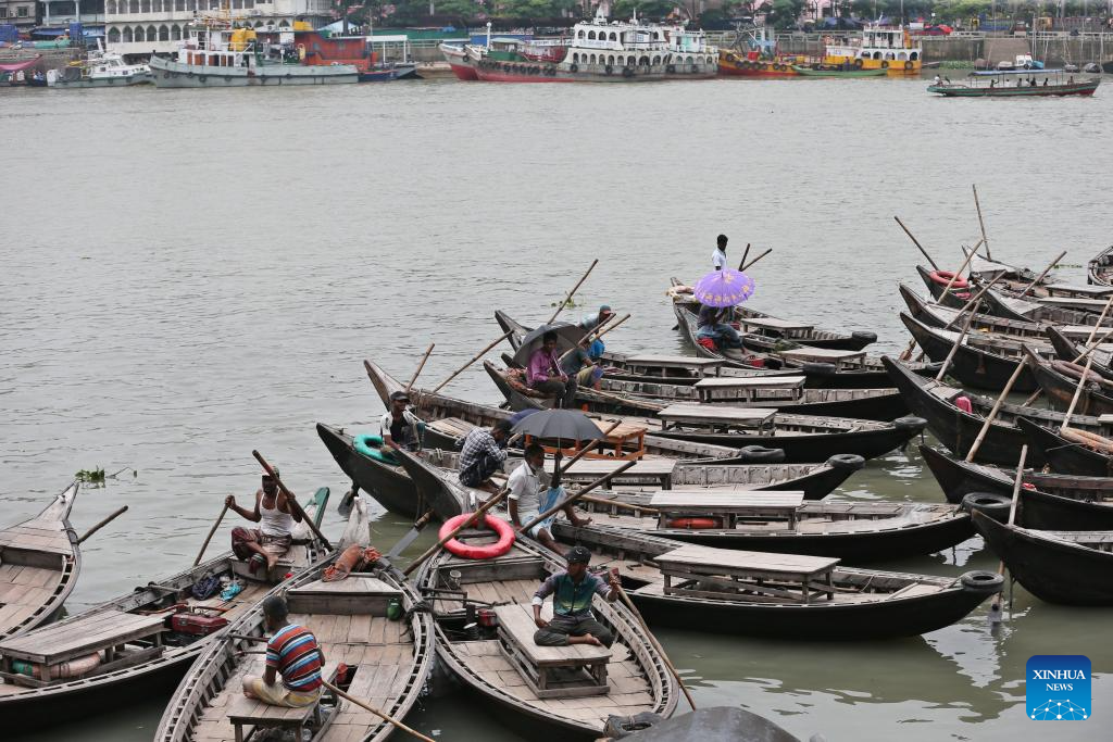 Boatmen wait for passengers on the Buriganga River in Dhaka, Bangladesh, on July 21, 2025. (Photo by Habibur Rahman/Xinhua)