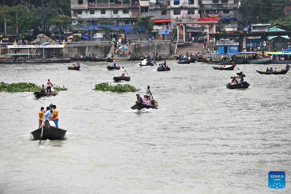 Boatmen ferry passengers across the Buriganga River in Dhaka, Bangladesh, on July 21, 2025. (Photo by Habibur Rahman/Xinhua)