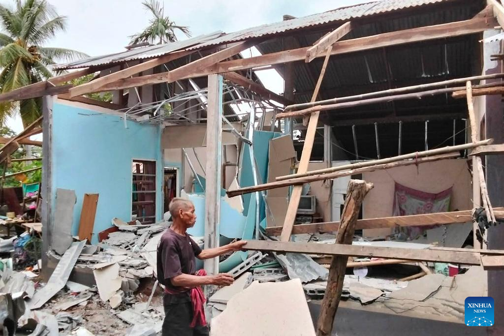 (250725) -- UBON RATCHATHANI, July 25, 2025 (Xinhua) -- This photo shows a damaged house in Ubon Ratchathani Province, Thailand on July 25, 2025. Armed clashes between Cambodian and Thai soldiers broke out on Thursday morning, with both sides accusing each other of opening gunfire first.