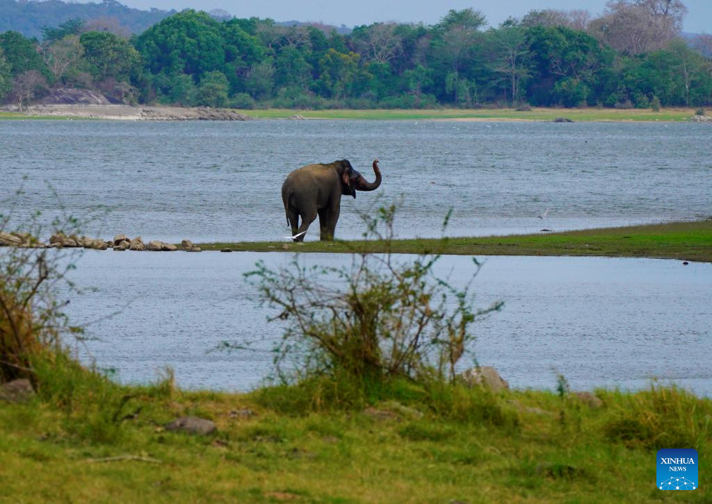 An Asian elephant is pictured in Minneriya national park, Sri Lanka, July 20, 2025. (Xinhua/Wu Yue)