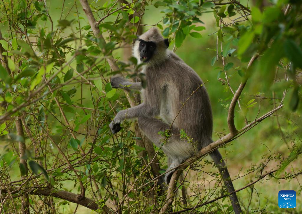 A langur is pictured in Minneriya national park, Sri Lanka, July 20, 2025. (Xinhua/Wu Yue)