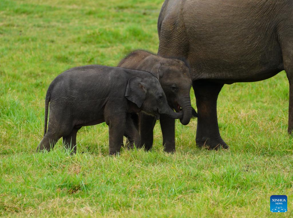 Asian elephants are pictured in Minneriya national park, Sri Lanka, July 20, 2025. (Xinhua/Wu Yue)