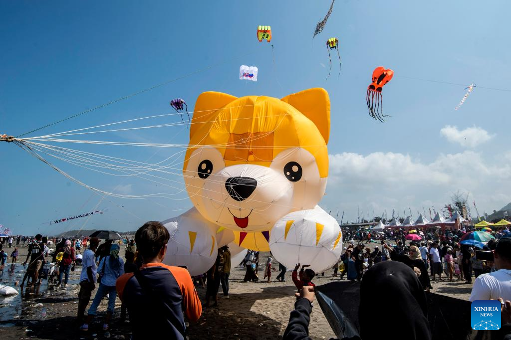 Participants fly their kites during the Jogja International Kite Festival 2025 at Parangkusumo beach in Yogyakarta, Indonesia, July 27, 2025. (Photo by Agung Supriyanto/Xinhua)