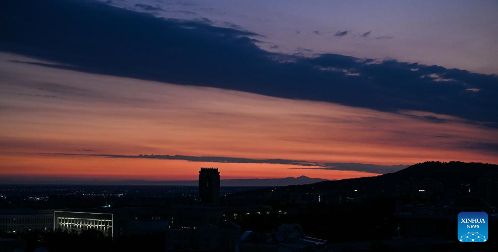 This photo taken on Aug. 4, 2025 shows the morning glow in Almaty, Kazakhstan. (Xinhua/Li Renzi)