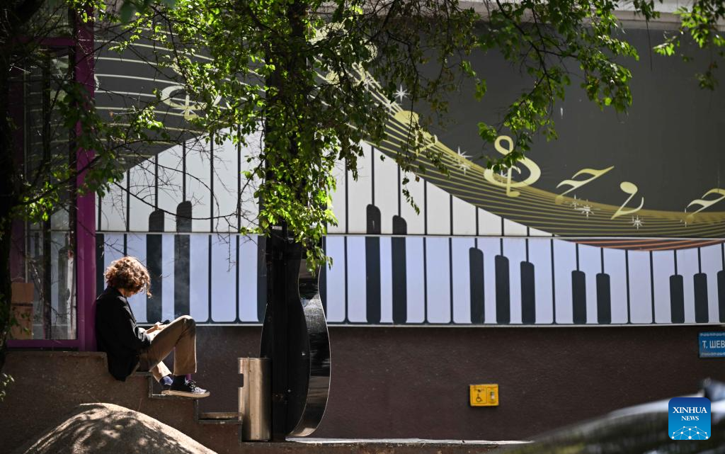 A woman takes a rest at a park in Almaty, Kazakhstan, on Aug. 3, 2025. (Xinhua/Li Renzi)