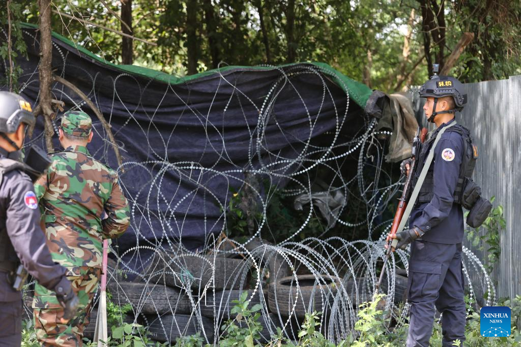 PHNOM PENH, Aug. 13 (Xinhua) -- A Cambodian defense spokesperson said on Wednesday afternoon that Thai armed forces had deployed barbed wire and tyres in a Cambodian border village, violating a ceasefire and consensus reached by the two countries.