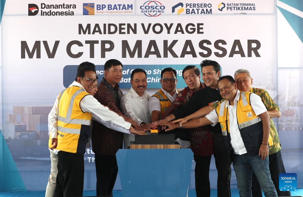 The voyage marked the inaugural sailing of a new direct shipping route operated by China's shipping giant COSCO from Batam to Yangpu Port in south China's island province of Hainan, enhancing sea connectivity between China and Southeast Asia.