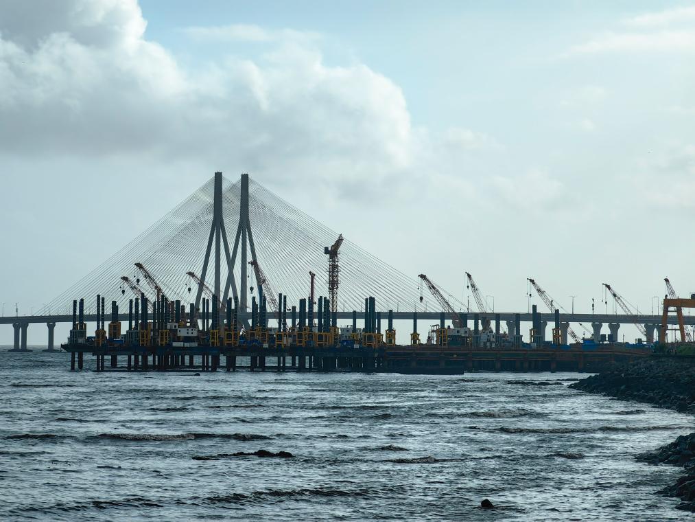 This photo taken with a mobile phone shows a view of Bandra-Worli Sea Link in Mumbai, India, Aug. 24, 2025. India boasts a diverse and rich culture, attracting global attention with its historical heritage, Bollywood film industry, yoga culture, and more. (Xinhua/Chen Dongshu)