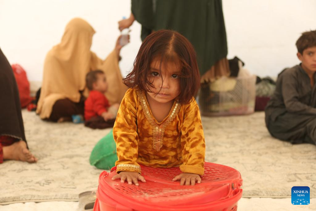 An Afghan girl is pictured at a refugee camp in Kabul, capital of Afghanistan, Aug. 30, 2025. A total of 2,844 Afghan refugee families, totaling 13,662 individuals, returned to Afghanistan from Iran and Pakistan on Thursday, Afghanistan's High Commission for Addressing Returnees Problems announced Friday. (Photo by Saifurahman Safi/Xinhua)