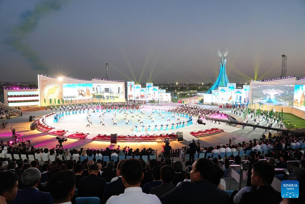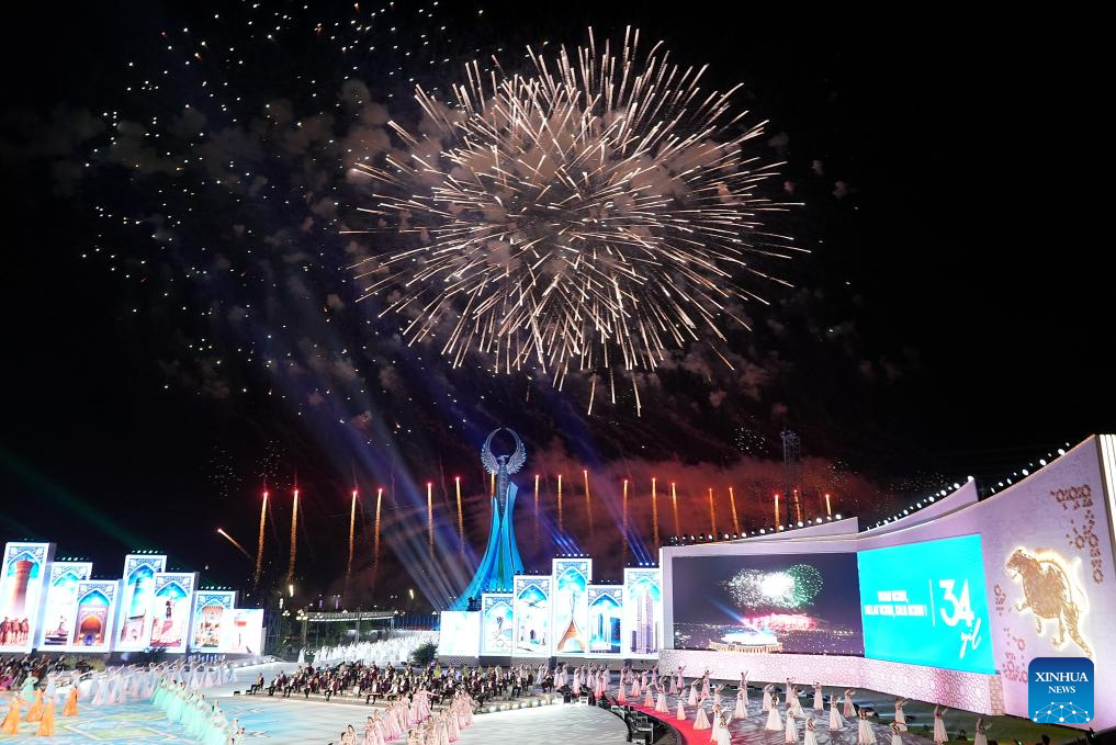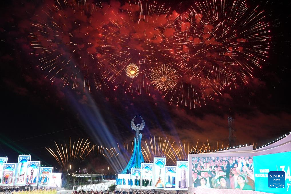 This photo taken on Aug. 29, 2025 shows a performance celebrating Uzbekistan's 34th Independence Day in Tashkent, Uzbekistan. (Photo by Zafar Khalilov/Xinhua)