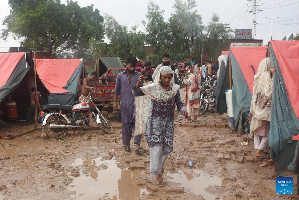 People are seen near their makeshift tents on the outskirts of Lahore, Pakistan, Sept. 1, 2025. Rain-related incidents across Pakistan claimed 31 lives and injured 26 others from Sunday to Monday, the National Disaster Management Authority (NDMA) said on Monday. (Photo by Sajjad/Xinhua)