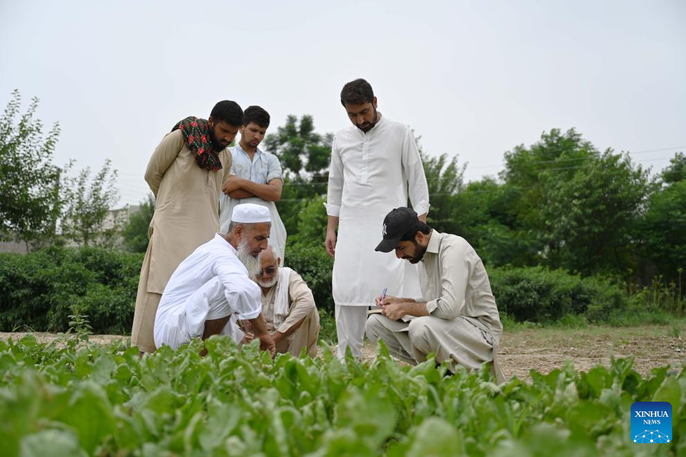 Farmers check on the growth of Chinese cauliflowers in Attock district of Pakistan's eastern Punjab province on Aug. 13, 2025. In recent years, Tianjin's cauliflower seed exports to Pakistan have accounted for over 70 percent of Pakistan's annual planting, helping to address bottlenecks in the local cauliflower industry.