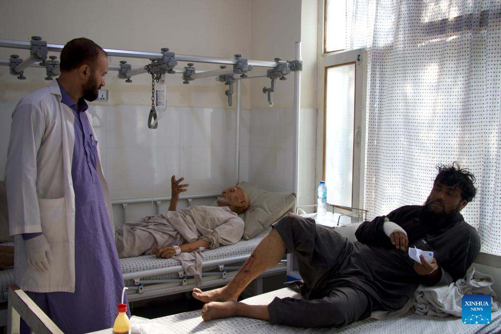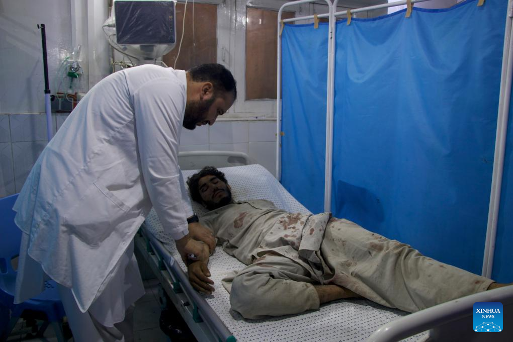 An injured person receives treatment at a hospital in Kunar province, Afghanistan, Sept. 1, 2025. The death toll from the earthquake in eastern Afghanistan's Kunar and Nangarhar provinces has risen to 622, with 1,555 others injured, the country's Ministry of Interior Affairs said in a statement on Monday. (Photo by Qazafi/Xinhua)