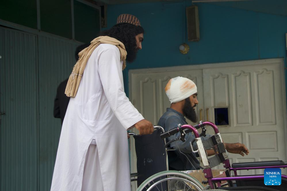 An injured person in wheelchair is pictured at a hospital in Kunar province, Afghanistan, Sept. 1, 2025. The death toll from the earthquake in eastern Afghanistan's Kunar and Nangarhar provinces has risen to 622, with 1,555 others injured, the country's Ministry of Interior Affairs said in a statement on Monday. (Photo by Qazafi/Xinhua)
