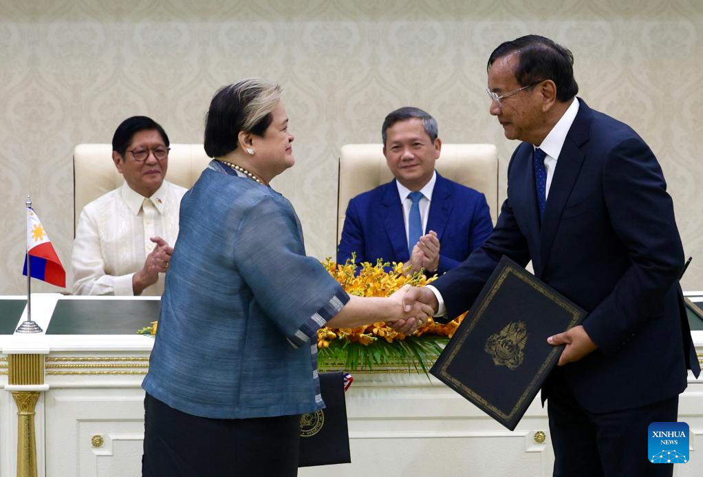 PHNOM PENH, Sept. 8 (Xinhua) -- Cambodia and the Philippines on Monday signed three documents, promoting bilateral cooperation in air connectivity, higher education, and combating cross-border crime.
