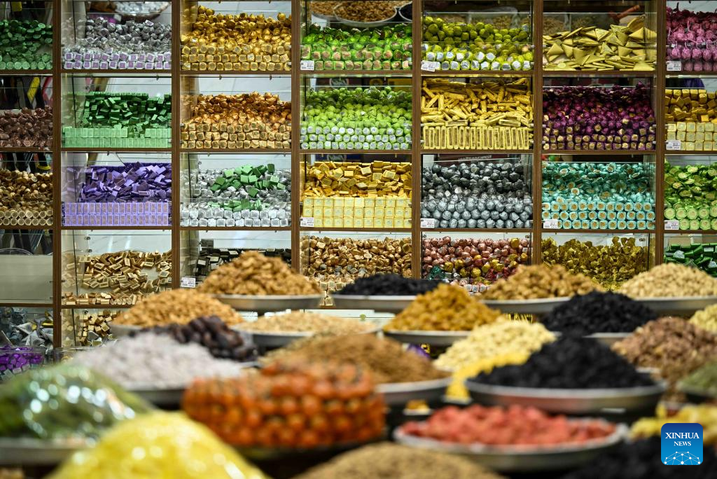 This photo taken on Sept. 8, 2025 shows candies sold at the Mehrgon Market in Dushanbe, Tajikistan. The Mehrgon Market stands as a captivating shopping attraction in Dushanbe, featuring distinctive architecture and a wonderful assortment of goods. (Xinhua/Li Renzi)