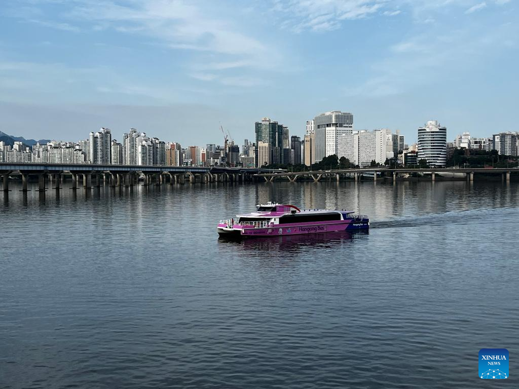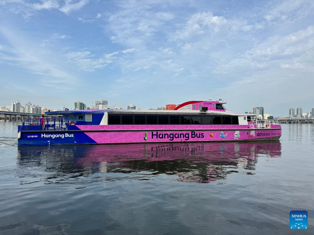 The "Hangang Bus" makes its trial voyage on the Han River in Seoul, South Korea, Sept. 17, 2025. According to the Seoul metropolitan government, the "Hangang Bus" will officially begin operation on Sept. 18. (Xinhua)