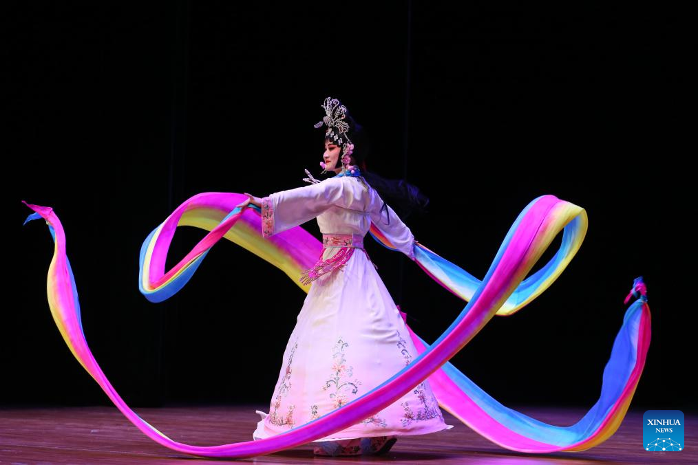 Artists of a Wu Opera troupe from east China's Zhejiang Province perform at the National Theatre of Yangon in Myanmar, Sept. 20, 2025. (Xinhua/Myo Kyaw Soe)